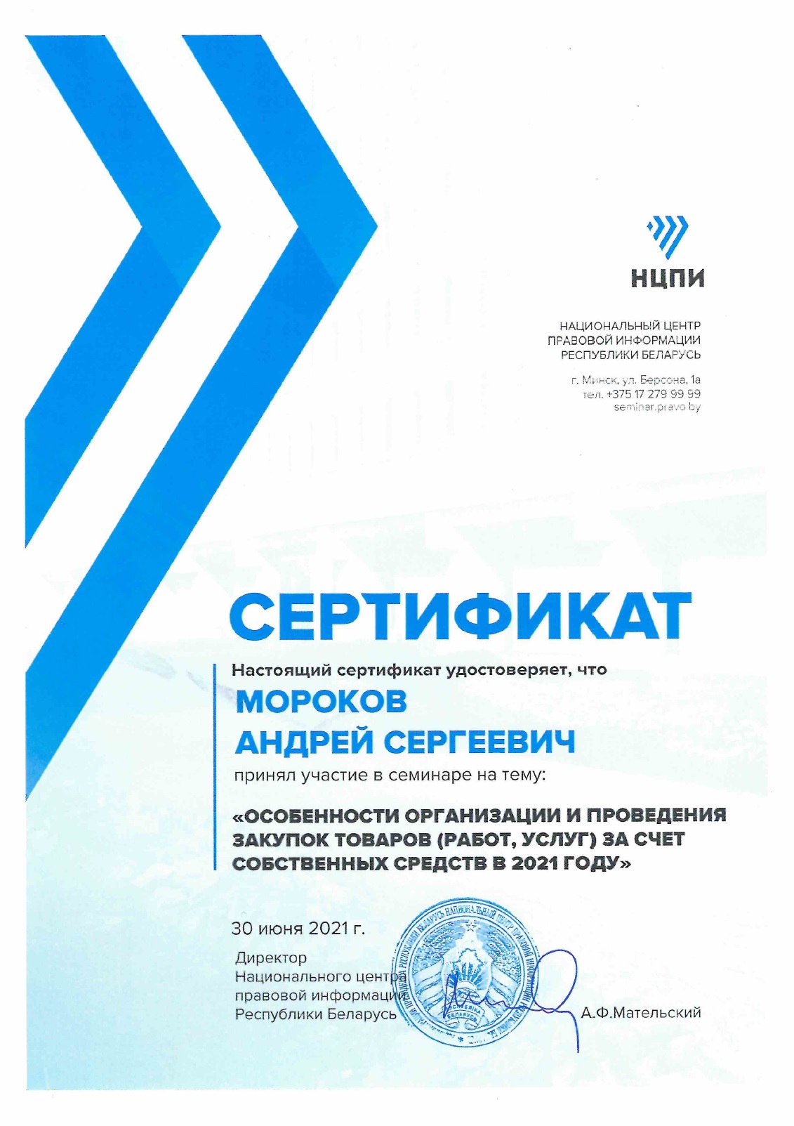 Семинар “Особенности организации и проведения закупок товаров (работ, услуг) за счет собственных средств в 2021 году”