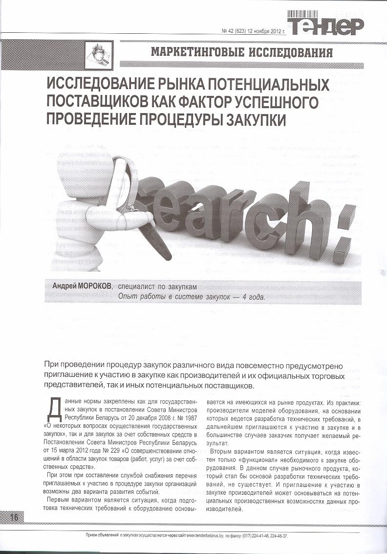 Статья “Исследование рынка потенциальных поставщиков как фактор успешного проведения процедуры закупки”