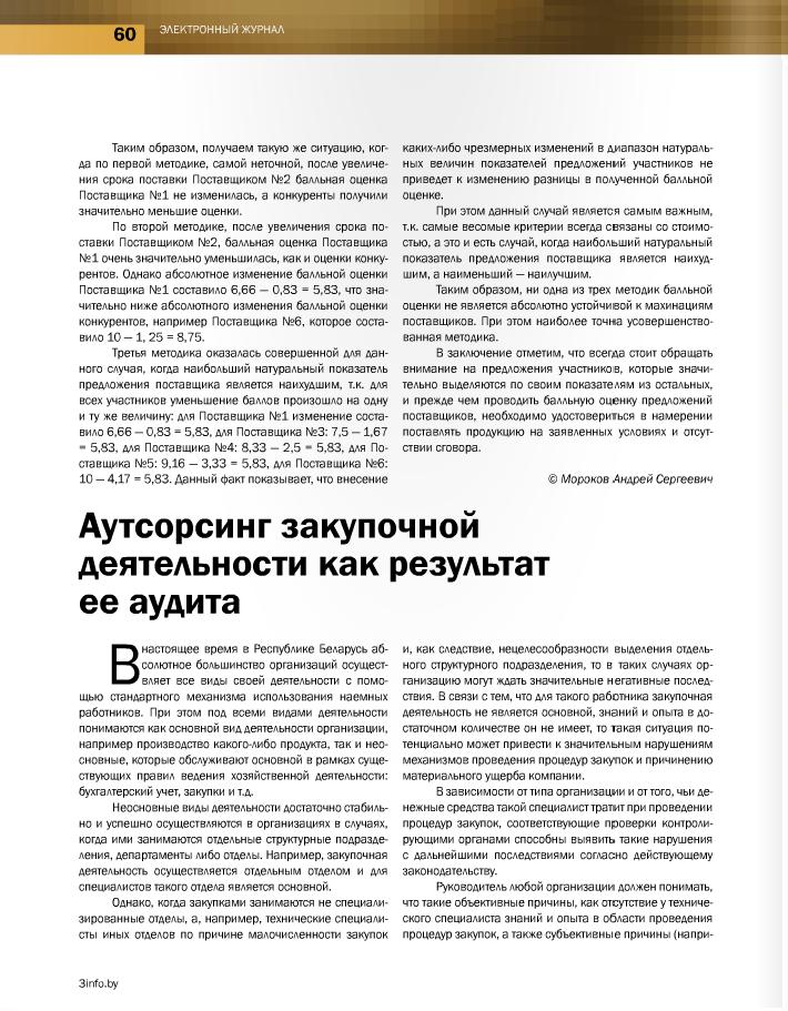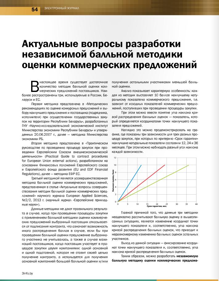 Статья “Актуальные вопросы совершенствования методик балльной оценки коммерческих предложений” (Current issues of improving of numerical methods of commercial offers evaluation)