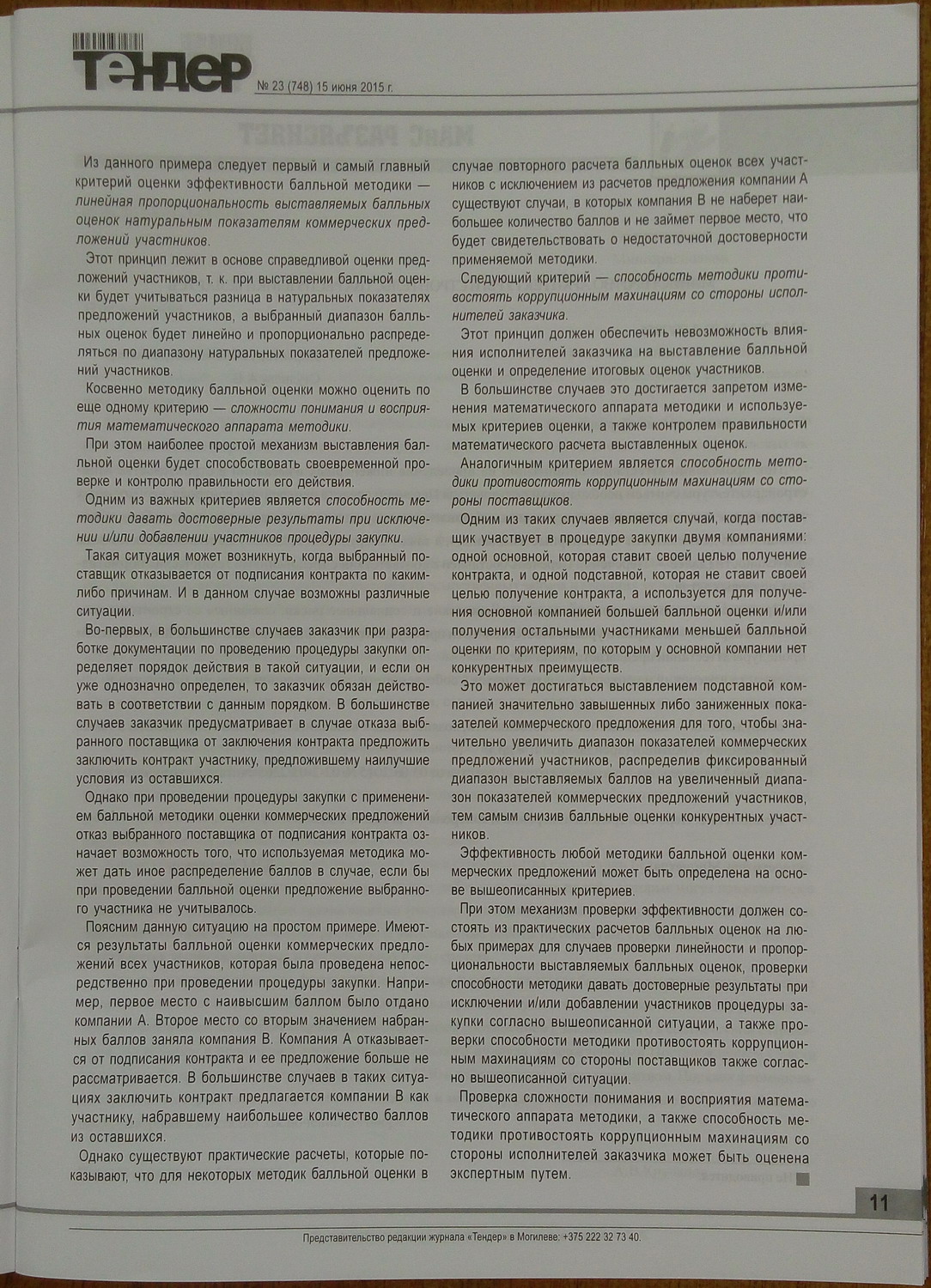 Статья “Актуальные вопросы разработки независимой балльной методики оценки коммерческих предложений” (Actual issues of developing an independent proxy means scoring technique for commercial proposals)