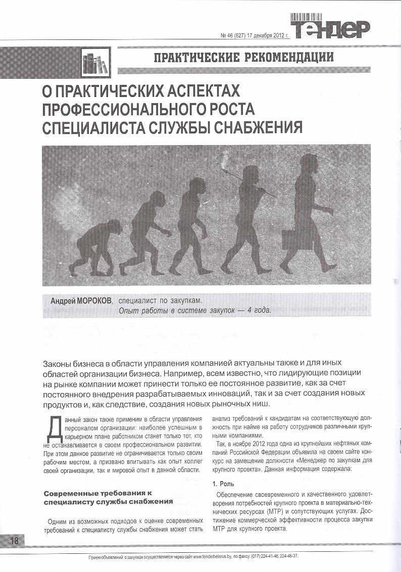 Статья “О практических аспектах профессионального роста специалиста службы снабжения”