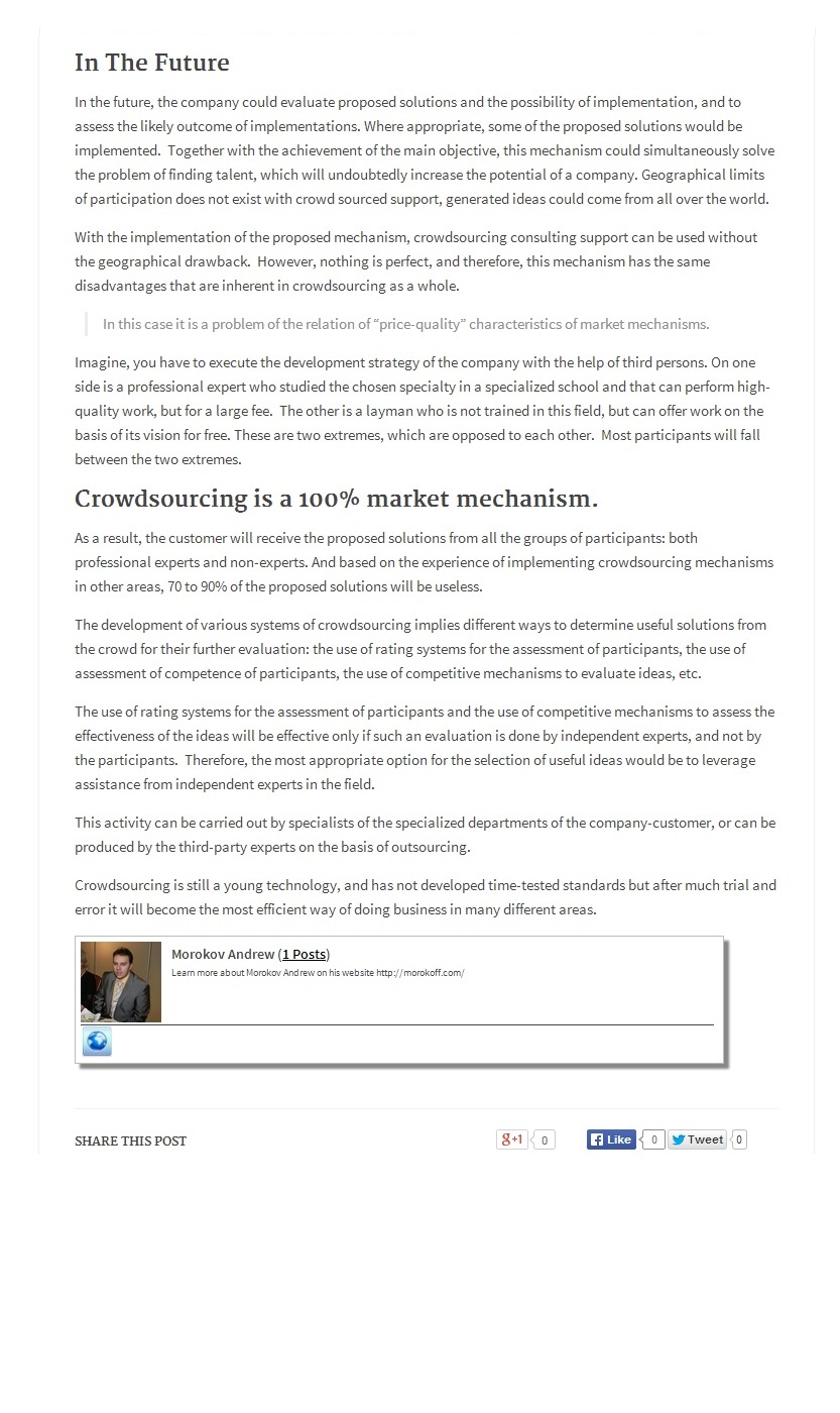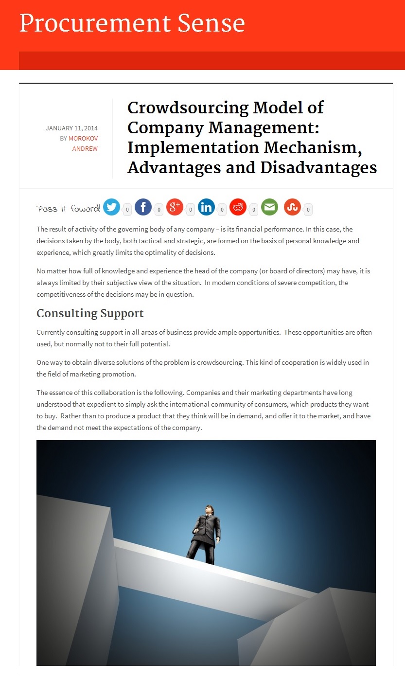 The article “Crowdsourcing Model of Company Management: Implementation Mechanism, Advantages and Disadvantages”